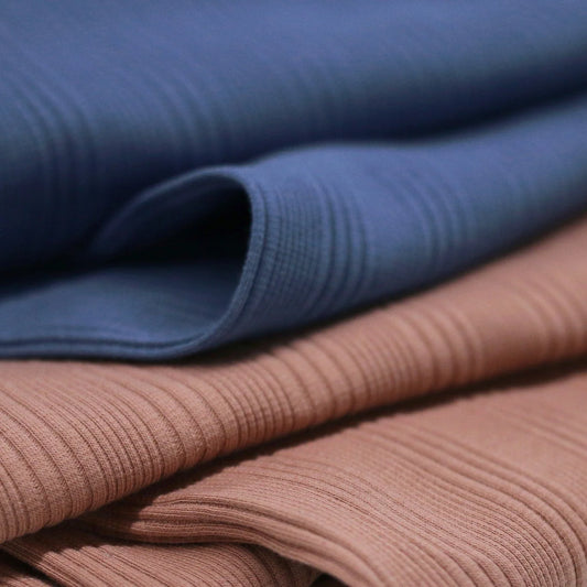 UNREGELMÄSSIGER RIPPSTRICK JERSEY STOFF DUNKEL JEANS Oeko-Tex 100